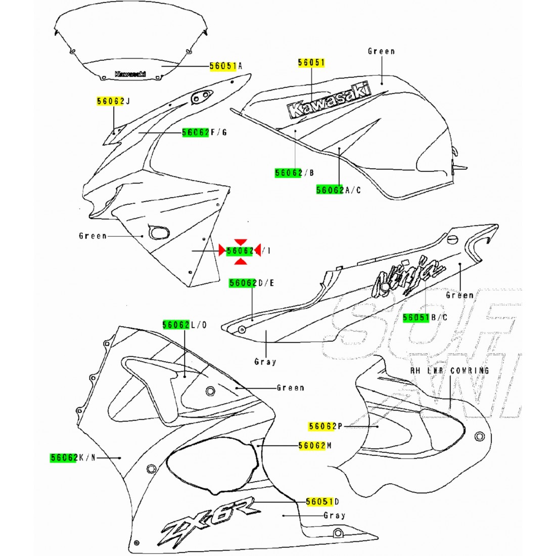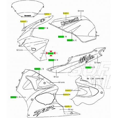 (R.16592) Vendo decalco cupolino lato sinistro nuovo per Kawasaki Ninja 600 cc dal 1998 originale Kawasaki con codice 560621805 , per applicazioni ed esploso vedere foto