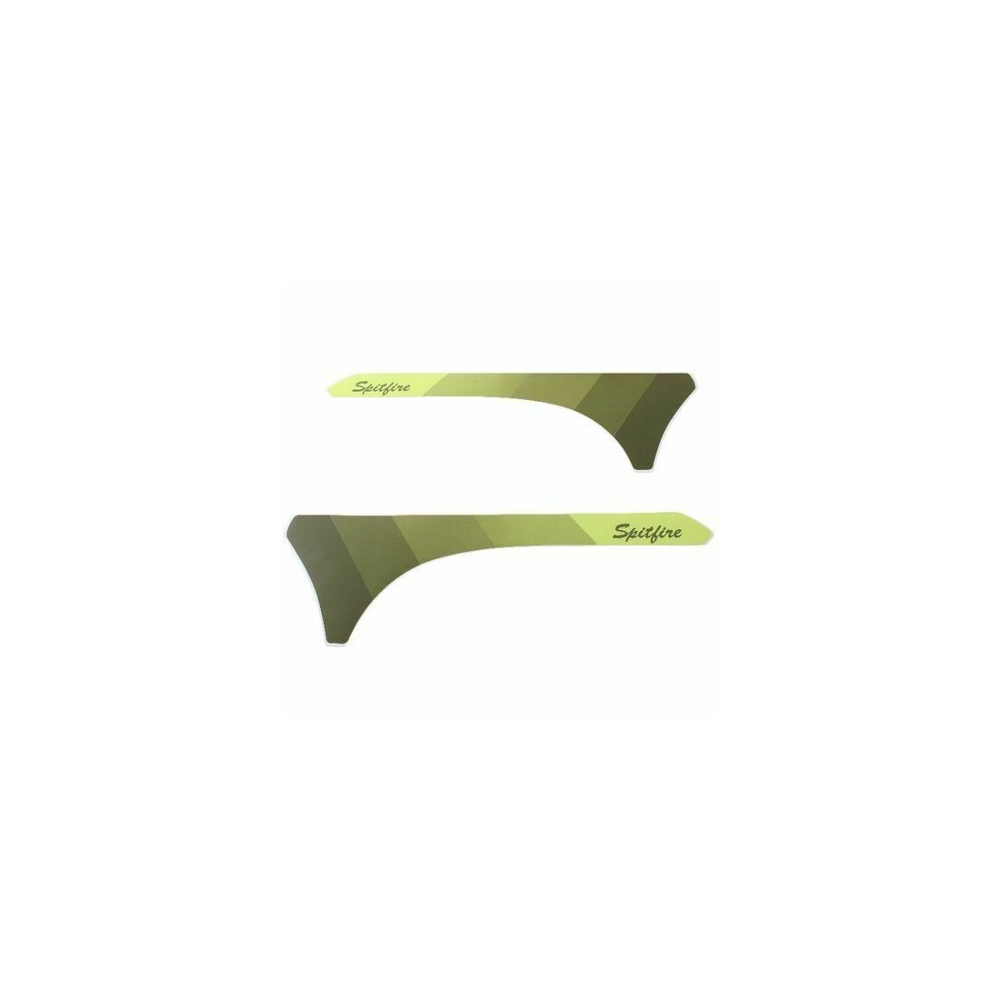 (R.11967) Vendo serie decalco fiancata sinistra e destra nuovi per Piaggio Vespa 50 e 125 di marca Utah colore verde con bordo bianco e scritta Spitfire , il prezzo si intende alla coppia , per misure vedere foto