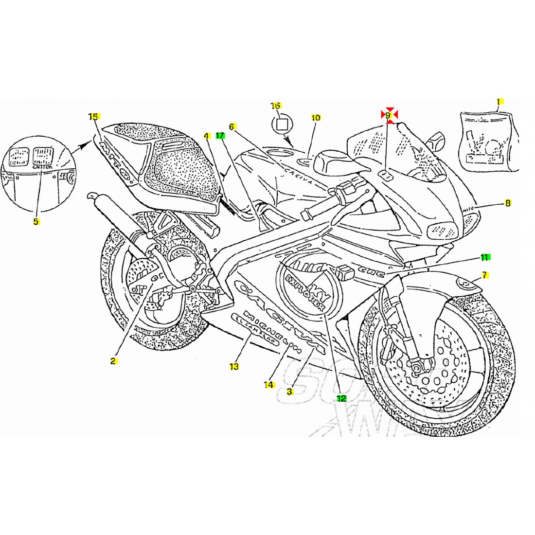 (R.17047) Vendo decalco nuovo logo Agip per cupolino della Cagiva Mito EV 125 cc dal 1994 al 1998 e Prima 50 cc dal 1992 con codice 800075324 - 75324 di colore nero su sfondo giallo con lunghezza 35 mm e altezza 46 mm , il prezzo si intende per singolo pezzo , per applicazioni ed esploso vedere foto , più pezzi disponibili