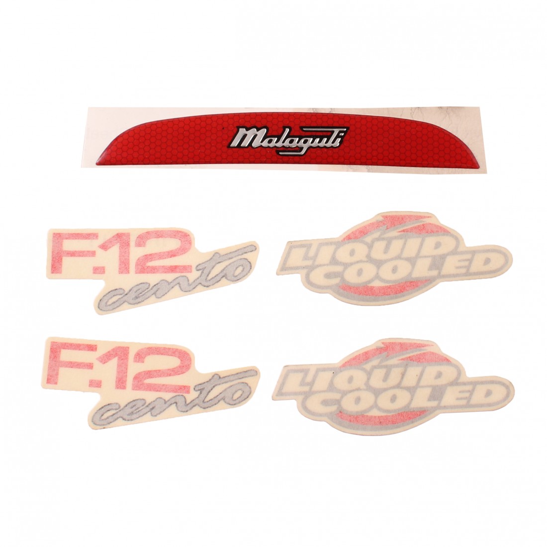 (R.18860) Vendo serie decalchi codino sedile nuovi per Malaguti F12 Phantom 100 cc con codice 18122700 o 18122701 di colore rosso/grigio , il prezzo si intende per singolo kit , per applicazioni vedere foto