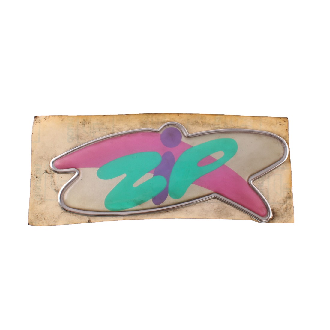 (R.18931) Vendo emblema fregio resinato destro nuovo per Piaggio Zip 50 cc prima serie dal 1992 con codice 296513 di colore verde - rosa - viola con leggeri segni di magazzinaggio  , per applicazioni vedere foto