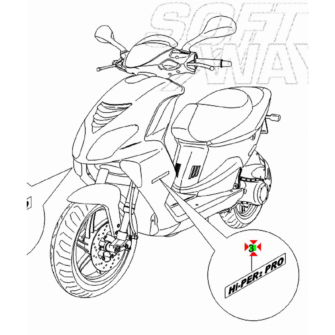 (R.20876) Vendo adesivo sinistro nuovo della carena anteriore con scritta "HI-PER2 PRO" per Piaggio NRG Power DD 50 cc dal 2005 al 2006 per colore azzurro 280 con codice Piaggio 62431100BI , per applicazioni e spaccato vedere foto