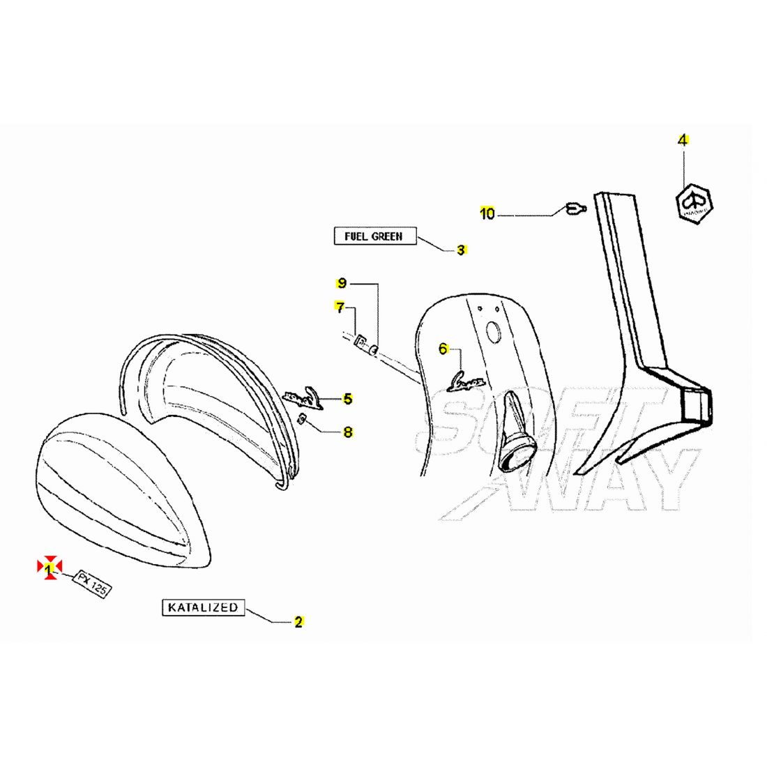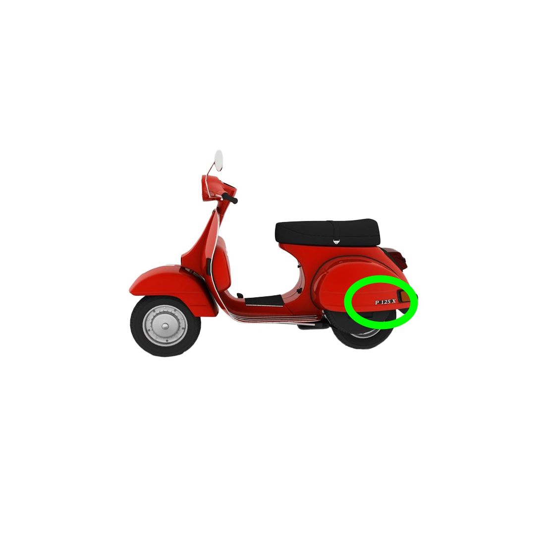 (R.22166) Vendo targhetta nuova del cofano laterale per Piaggio Vespa PX 125 cc dal 1978 - Vespa PE 125 dal 1978 simile a codice Piaggio  181327 cerchiata in foto , per applicazioni e spaccato vedere foto