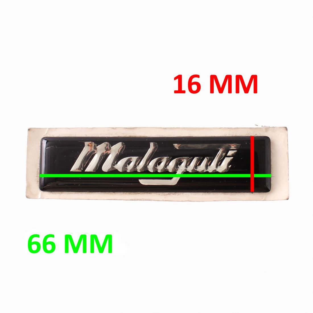 (R. 25164) Vendo adesivo nuovo per scooter Malaguti in resina sfondo nero e scritta Malaguti di colore argento , con lunghezza adesivo da 66 mm e altezza da 16 mm , per misure vedere foto