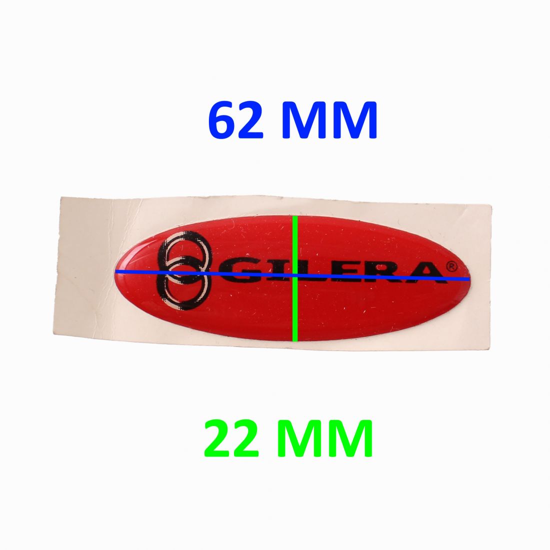 (R. 25185) Vendo targhetta adesiva nuova per Gilera in resina rossa con scritta nera con larghezza adesivo da 62 mm e altezza da 22 mm , per misure vedere foto