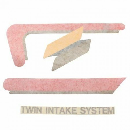 (R.12464) Vendo serie decalco fianchetto laterale destro nuove per Malaguti Fifty HF 50 cc di colore rosso e nero con una bandina gialla e scritta TWIN INTAKE SYSTEM , il prezzo si intende per kit , foto del veicolo solo a scopo dimostrativo