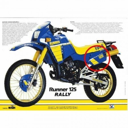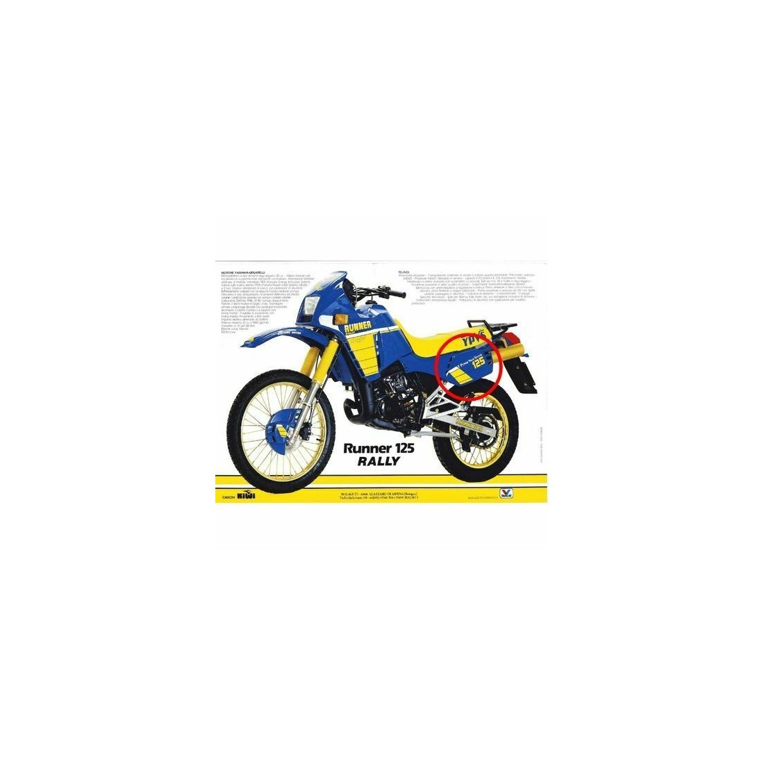 (R.12316) Vendo serie decalco fianchetto portanumero posteriore lato sinistro nuovo per Malaguti Runner 125 Rally di colore giallo e blu , il prezzo si intende per kit , foto della moto solo a scopo dimostrativo