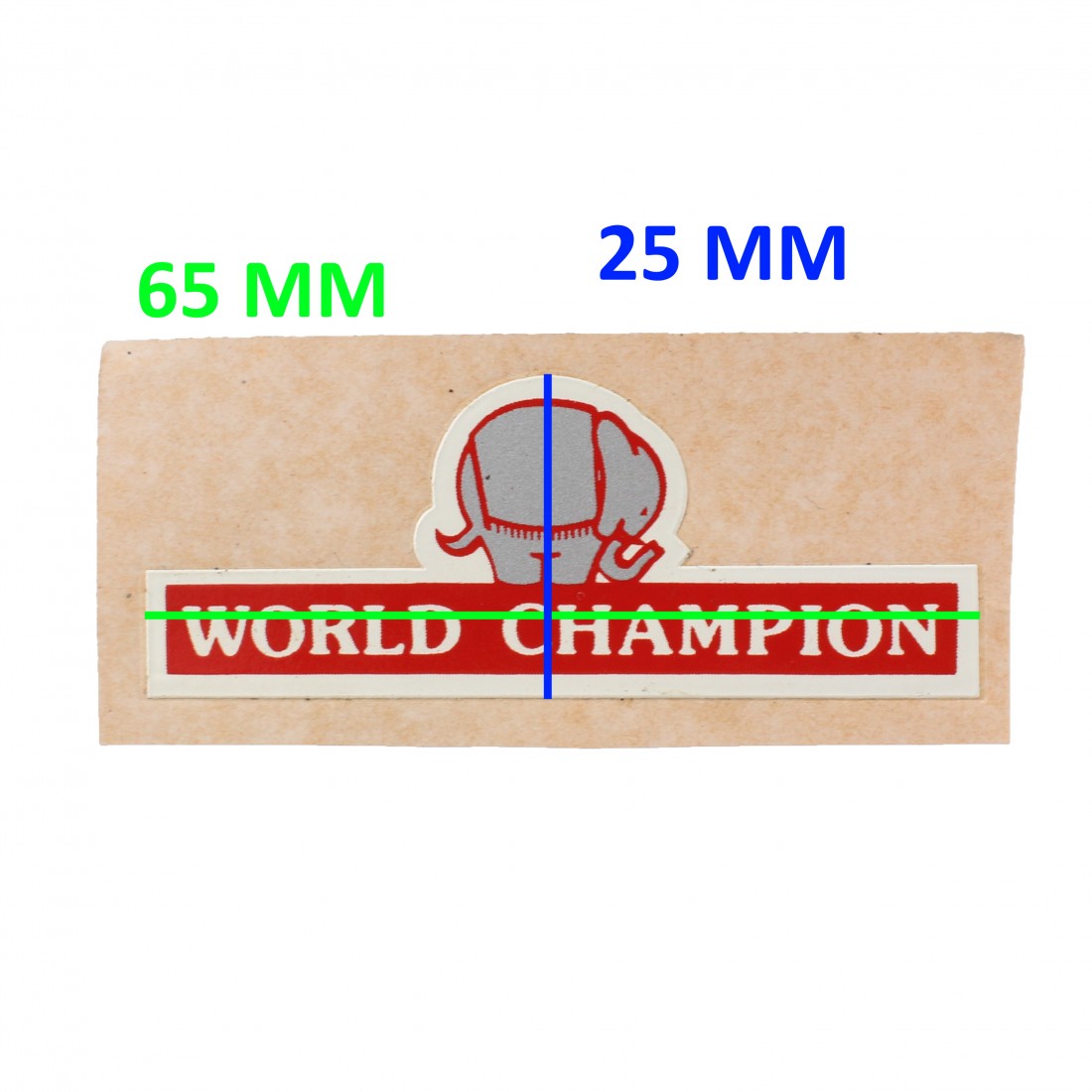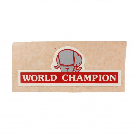 (R.14630) Vendo adesivo scritta World Champion con elefantino nuovo per moto Cagiva varie di colore rosso e bianco con lunghezza 65 mm e altezza 25 mm , per misure vedere foto