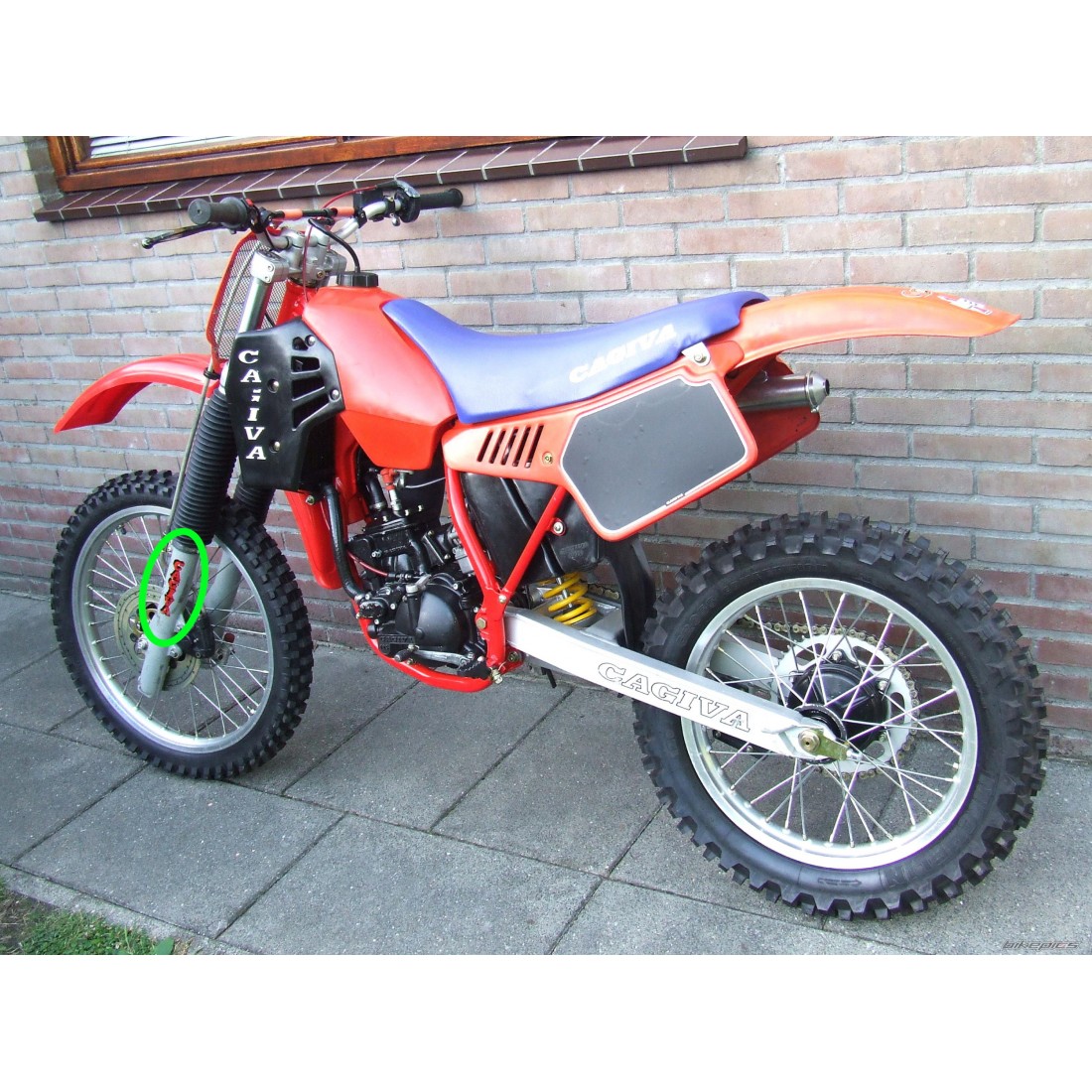 (R.14692) Vendo decalco foderi copri steli forcella con scritta Cagiva verticale nuovo per moto Cagiva varie tipo WMX 125 cc di colore rosso e nero con larghezza 25 mm e altezza 135 mm , il prezzo si intende per singolo pezzo , per misure vedere foto , foto del veicolo solo a scopo dimostrativo