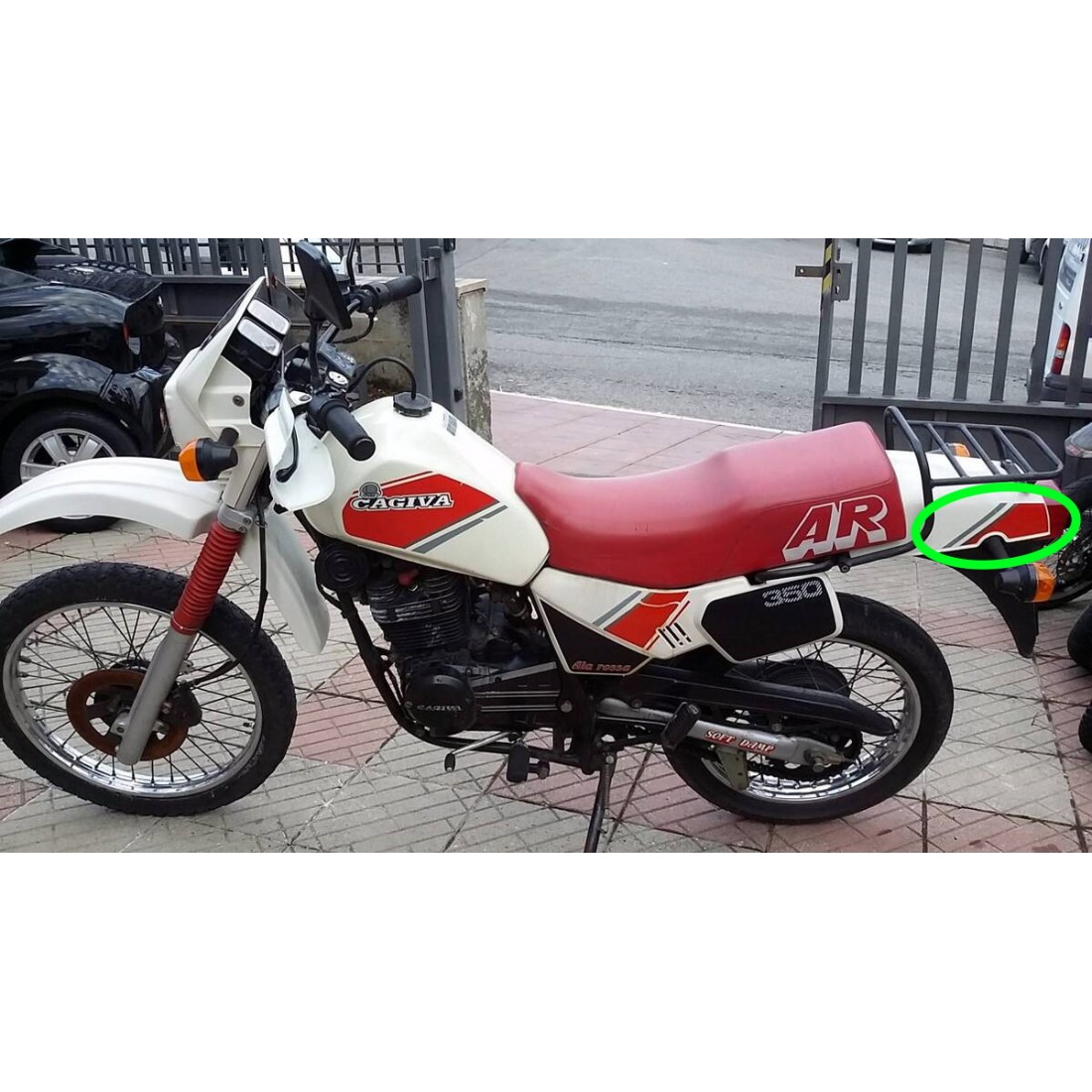 (R.14693) Vendo decalco parafango posteriore lato sinistro nuovo per Cagiva Ala Rossa 350 cc di colore bianco - argento - nero con lunghezza 205 mm e altezza 75 mm , per misure vedere foto , foto del veicolo solo a scopo dimostrativo , disponibile solo lato sinistro no destro