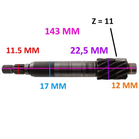 (R.11652) Vendo albero usato della  trasmissione mozzo posteriore per Peugeot Speed Fight 3 con 11 denti , con lunghezza totale 143 mm e diametro ingranaggio 22,5 mm , per misure vedere foto