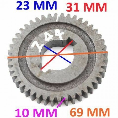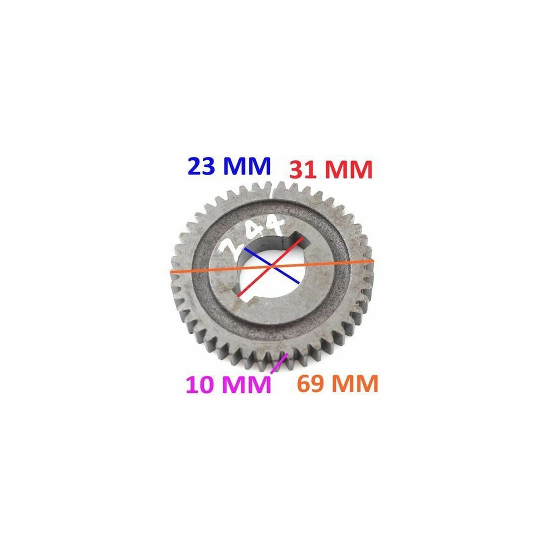(R.2524) Vendo ingranaggio nuovo del mozzo posteriore da 44 denti per Piaggio Ciao - Boxer - Boxer2 - Gilera Eco - Bravo - SI - Superbravo con codice Piaggio 131930 , foro interno da 23 mm e foro scanso da 31 mm. , diametro esterno da 69 mm. con altezza 10 mm. , per misure vedere foto