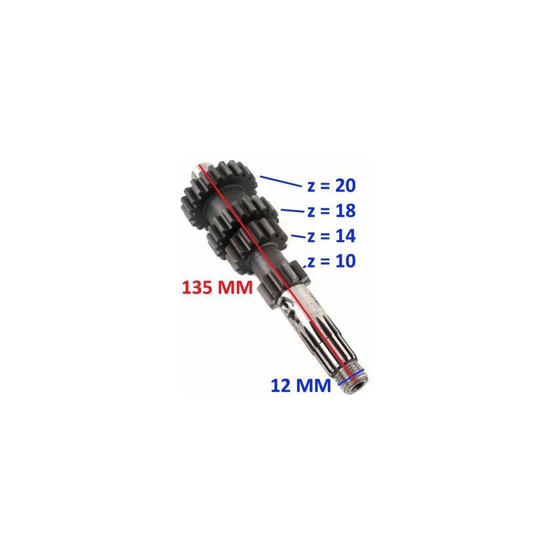 (R.5948) Vendo alberino primario completo nuovo Franco Morini GS con dentatura 10 - 14 - 18 - 20  , per misure e numero denti degli ingranaggi vedere foto