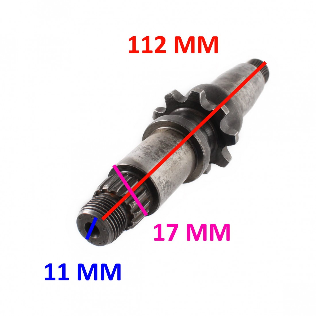 (R.14569) Vendo albero primario nuovo per Garelli Katia con lunghezza 112 mm e con pignone da 9 denti , per misure vedere foto