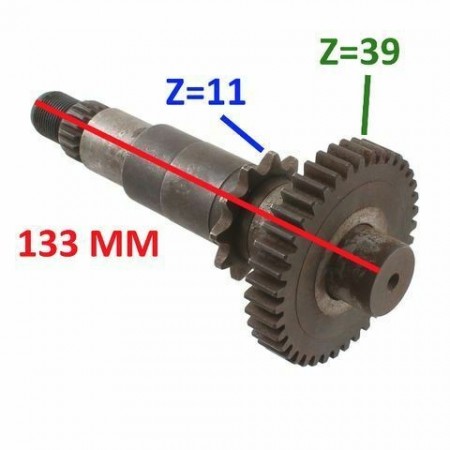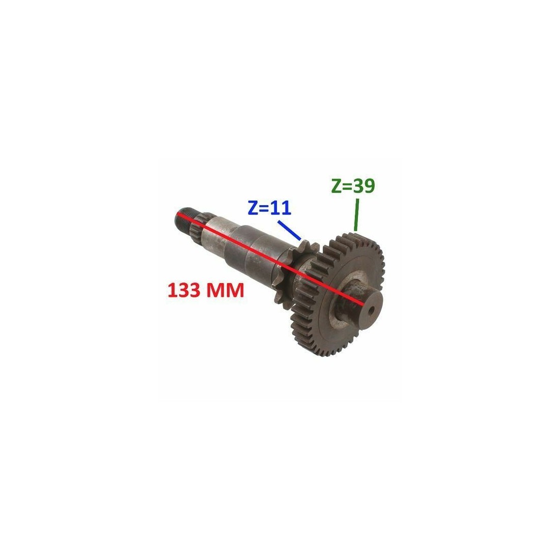 (R.11315) Vendo albero secondario nuovo per Garelli con ruota dentate 39 denti e 11 denti con lunghezza 133 mm