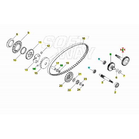 (R.21064) Vendo albero secondario nuovo della ruota posteriore senza ingranaggio dentatocon codici con ingranggio dentato Aprilia AP8206531 - Malaguti 70104700 - Yamaha 3WTE74200000 per scooter vari con motore Minarelli tipo : Aprilia SR - SR Liquid Cooled - SR Stealth - SR Racing - SR WWW - Gulliver - Gulliver LC - Rally - Rally Liquid Cooled - Area 51 50 cc , Yamaha YQ Aerox - YQ Aerox R - YQ L Aerox EURO2 - NS50 Aerox - NS50N Aerox naked 50 cc , Malaguti F12 Phantom - F12 Phantom LC - F12 Phantom LC Twin Disks - F12 Phantom EURO1 - F12 Phantom Restyling - F12 Aria Restyling EURO2 - F15 Fire Fox Air Cooled 50 cc per applicazioni e spaccato vedere foto