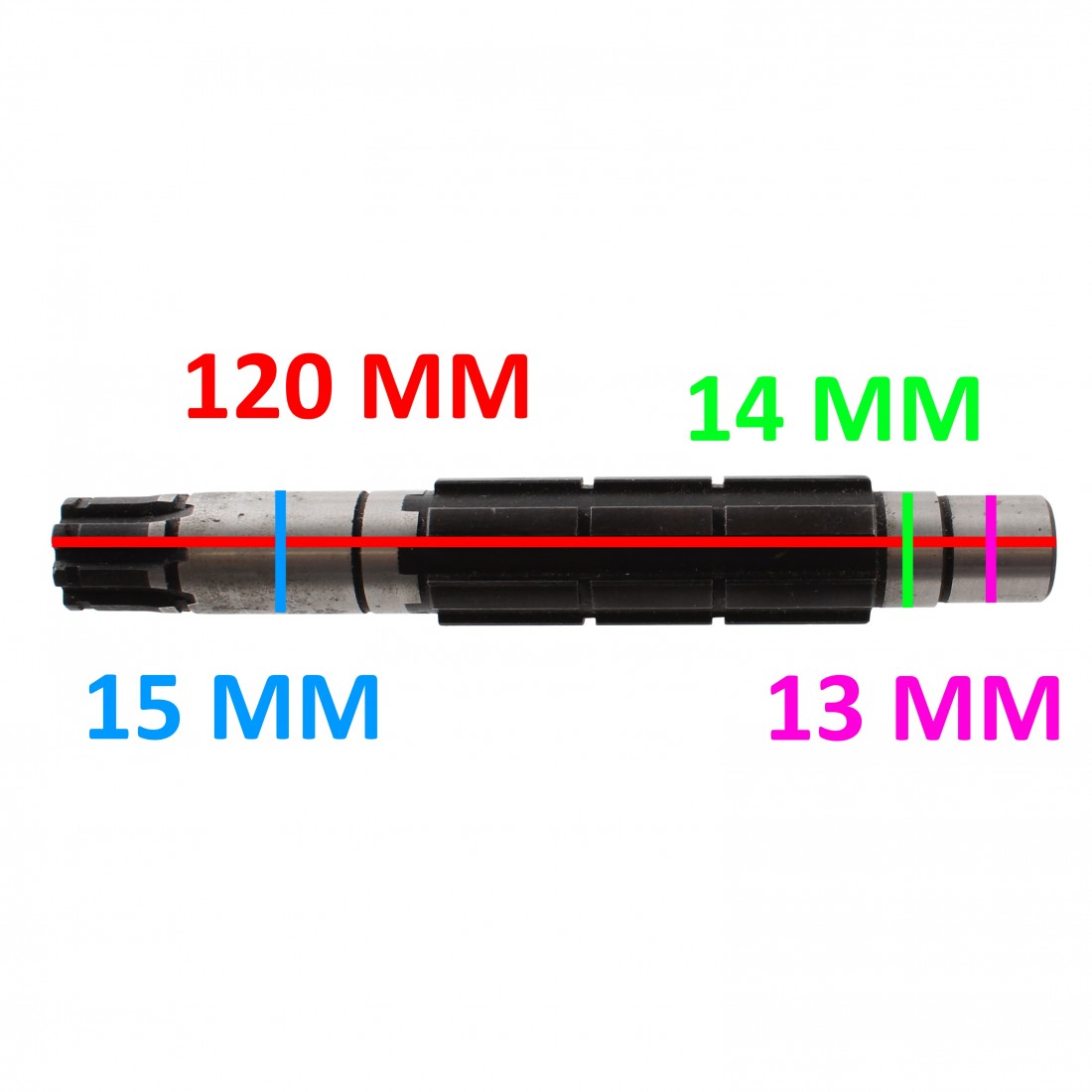 (R.13520) Vendo albero secondario nudo nuovo per motore Minarelli RV 4 con codice 010426 o 0104267 con lunghezza 120 mm , per misure vedere foto