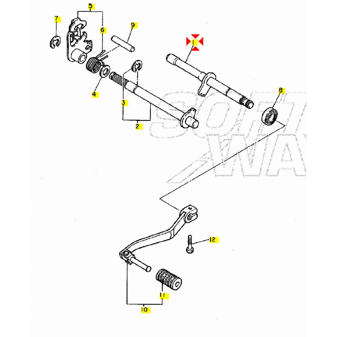 (R.21653) Vendo albero selettore cambio esterno usato per Yamaha XT 550 cc e 600 cc - XT Z Tenere 600 e 660 cc - SRX 600 cc- TT N 600 cc - XT E 600 cc - XT K 600 cc - TT K 600 cc - TT E 600 cc - TT R 600 cc - TT RE 600 cc - TT W 600 cc con codice Yamaha 43F181020200 , per applicazioni e spaccato vedere foto