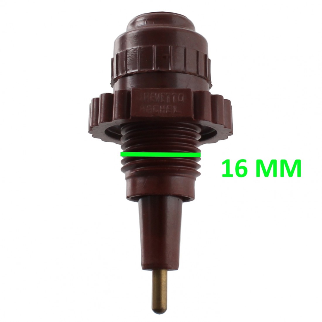 (R.11623) Vendo connettore alta tensione nuova in bachelite per Vespa 125 cc fino al 1957 con telai V30 > V33T , VM1 > 2T VN1 > 2T , V14T > 87483 , V15T, V30T > V33T , VM1T , VM2T , VN1T , VN2T con codice OY 62053 marchiata Brevetto Bachel originale epoca , diametro filetto 16 mm