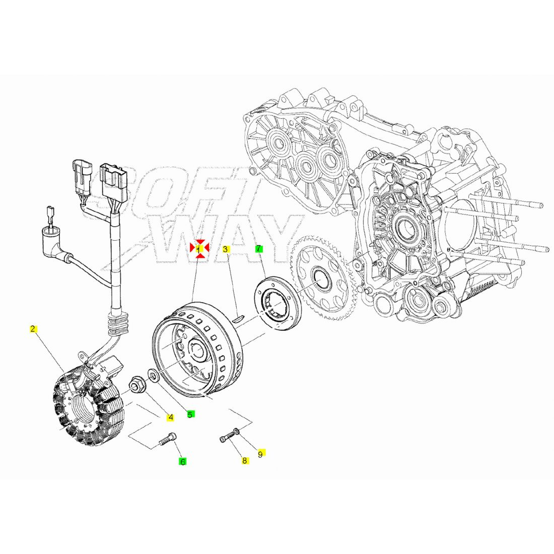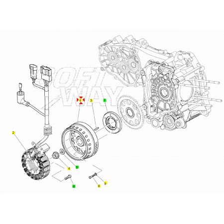 (R.24053) Vendo rotore generatore nuovo per Piaggio Beverly 400 e 500 dal 2002 - X Evo 400 dal 2007 - X8 400 dal 2006 - X9 e X9 Evolution 500 dal 2001 , originale Piaggio con codice 58040R , per applicazioni e spaccato vedere foto