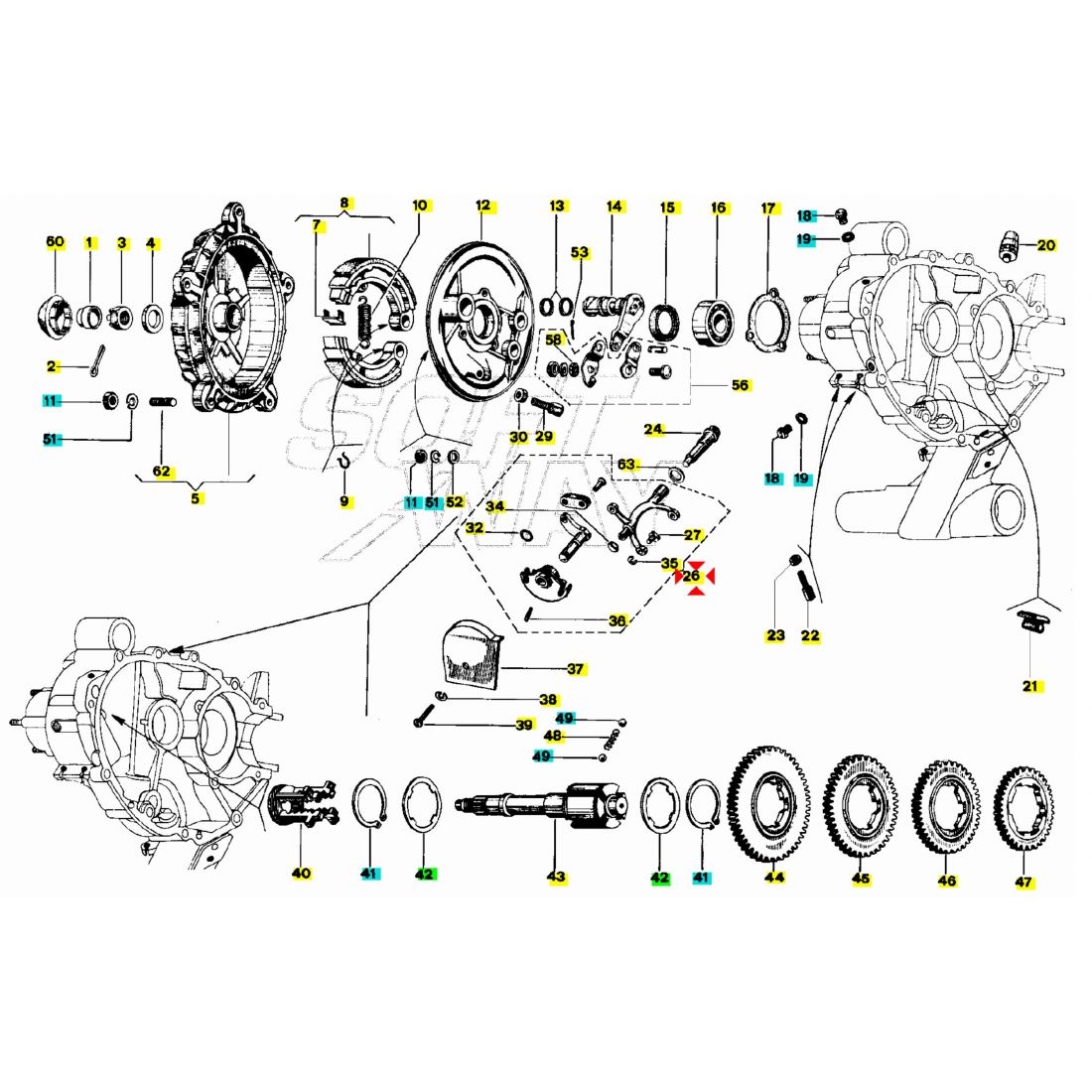 (R.22746) Vendo preselettore del cambio nuovo per Piaggio Vespa N 50 dal 1989 - Vespa PK XL 50 e 125 dal 1985 - Vespa PK 50 dal 1982 - Vespa PK XL Rush 50 dal 1988 simile a codice Piaggio 179383 , per applicazioni e spaccato vedere foto