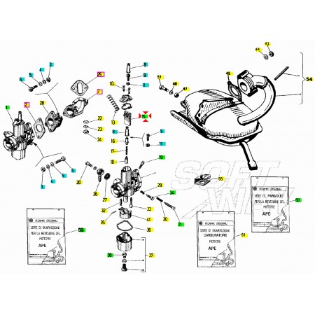 (R.15999) Vendo valvola gas del carburatore nuova per Piaggio Ape MP P501 P601 dal 1978 e altri veicoli con codice Piaggio 180599, per applicazioni ed esploso vedere foto , sono disponibili più varianti :