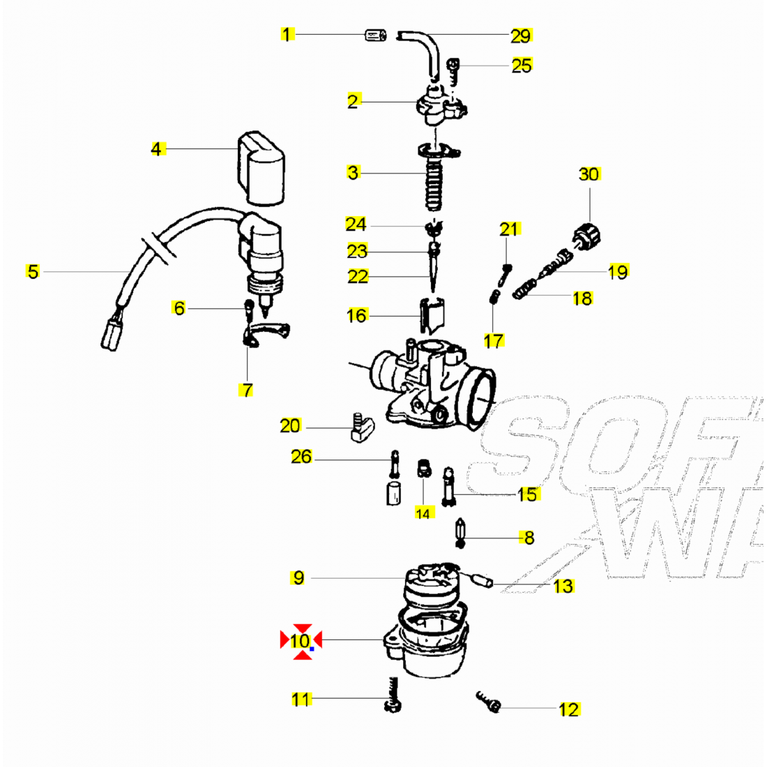(R.20592) Vendo vaschetta del galleggiante benzina nuova per carburatori Dell'Orto PHVA e PHVB per scooter vari e scooter Piaggio 50 cc 2 tempi tipo Zip - Typhoon - Liberty - Fly - Nrg - Vespa con codice Piaggio 484704 e codice Dell'Orto 143630096 , per applicazioni e spaccato vedere foto