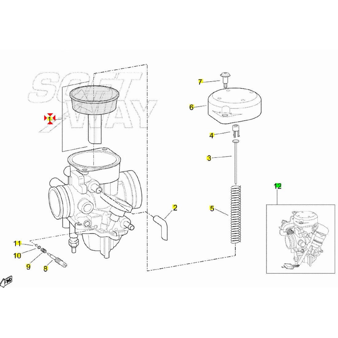(R.24225) Vendo membrana del carburatore nuova per Aprilia Scarabeo 125 , 150 e 200 dal 1999 con motore Rotax , simile a codice Aprilia AP8106661 , per applicazioni e spaccato vedere foto