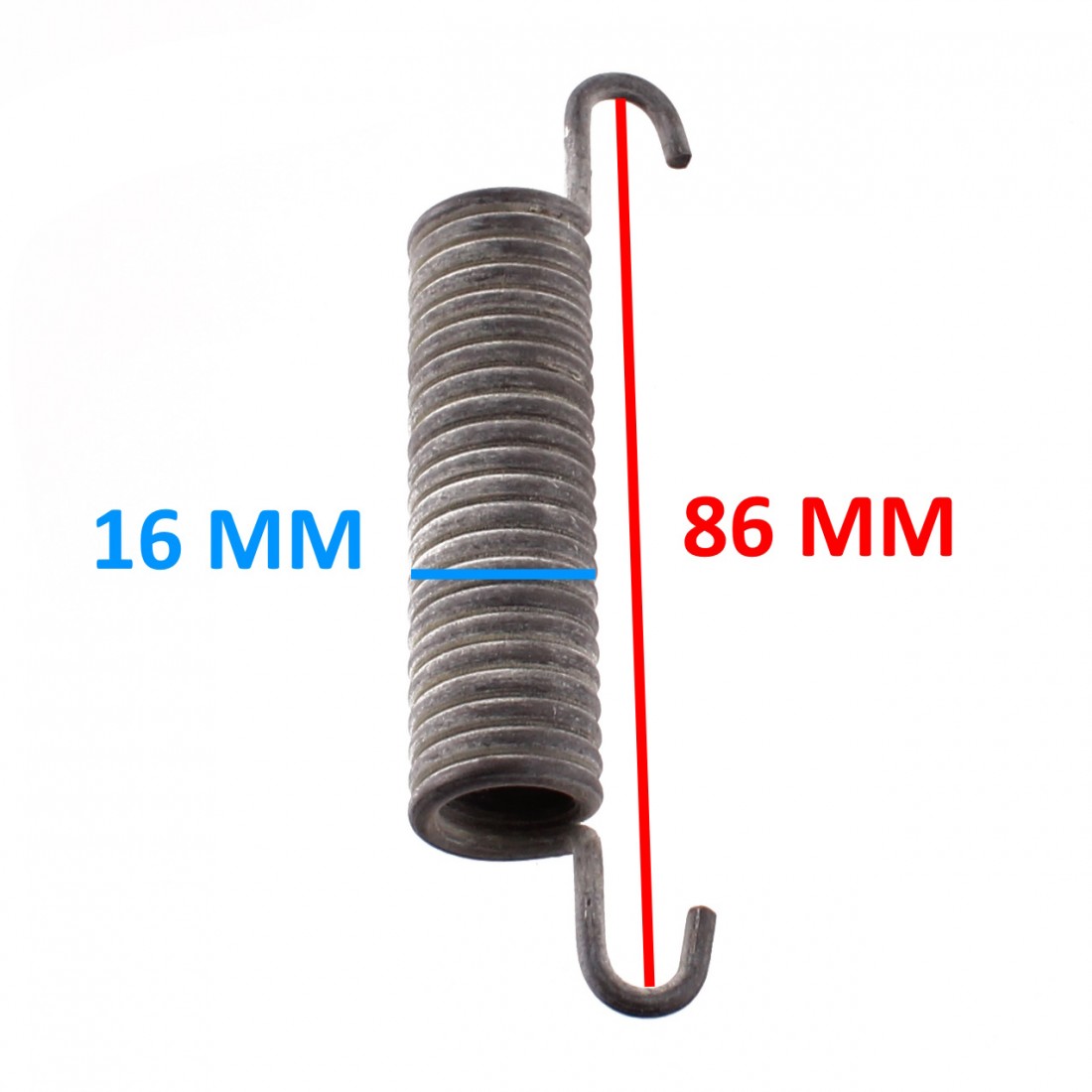 (R.18572) Vendo molla cavalletto centrale nuova per Atala Rizzato Califfone con lunghezza ganci di 86 mm e diametro molla da 16 mm. , per misure vedere foto