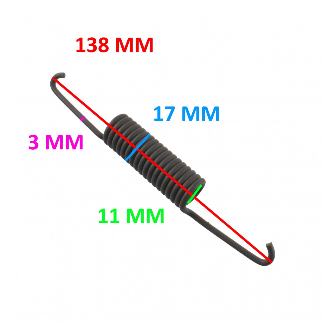 (R.14268) Vendo molla cavalletto nuova per Piaggio Boxer originale Piaggio con codice 124052 con diametro interno 11 mm e diametro esterno 17 mm con lunghezza totale 138 mm , per misure vedere foto