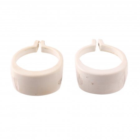 (R.18764) Vendo coppia fascette sostegno steli forcella anteriore usate per Fantic Caballero 50 - 125 - 200 cc dal 2007 - TX 180 cc dal 2015 - TZ 170 e 200 cc dal 2015 di colore bianco e leggermente consumati sulla parte frontale , il prezzo si intende per la coppia