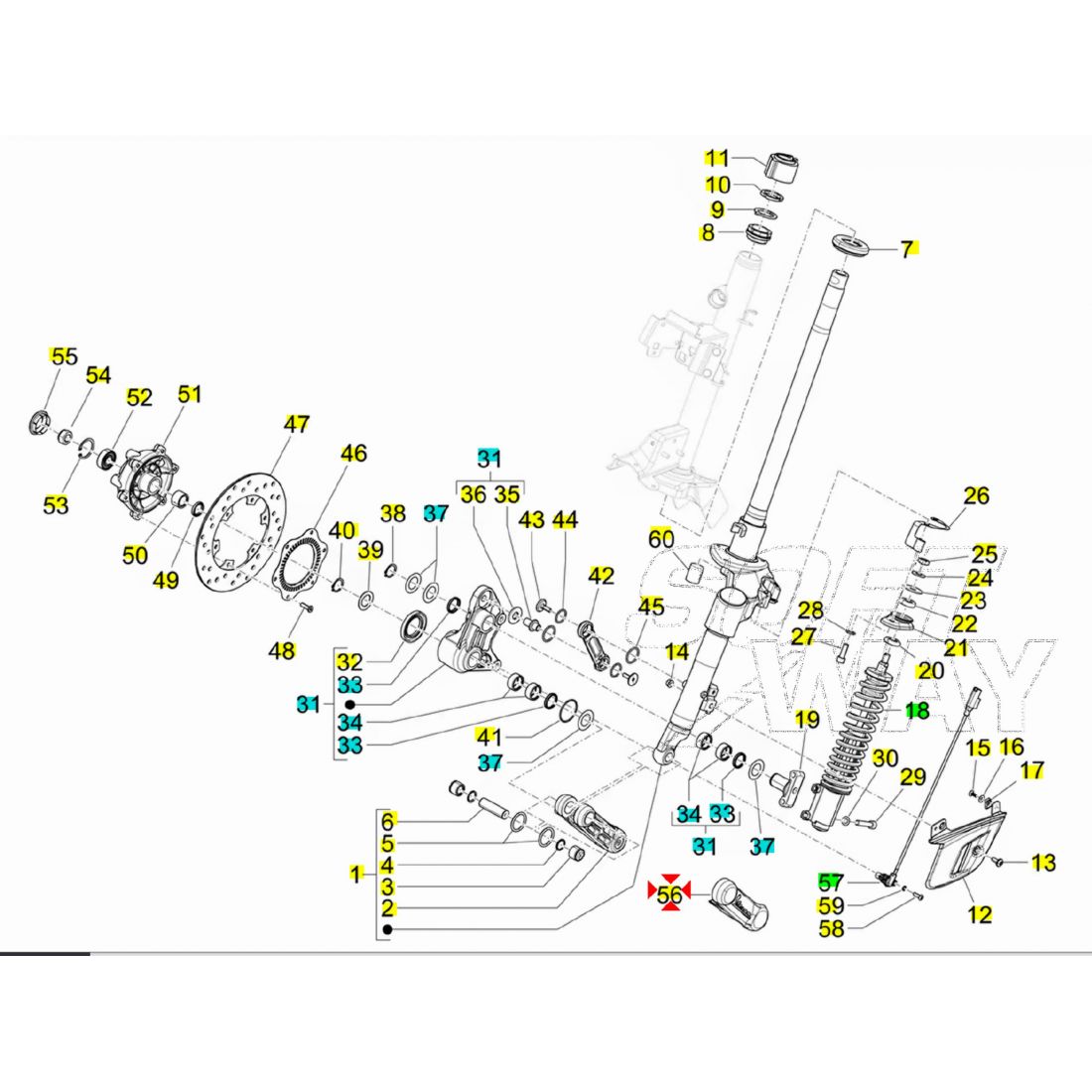(R. 25066) Vendo coperchio copri molleggio del braccio oscillante della sospensione anteriore nuovo per Piaggio Vespa S 50 e 125 cc - LXV 50 e 125 cc - LX 50 , 125 e 150 cc - GTV 125 , 250 e 300 cc - Granturismo 125 e 200 cc - ET4 50 e 125 cc - ET2 50 cc - Vespa ET2 ET4 LX LXV S GTS GTS Super GTV/GT 60 GT GT L 50 con codice Piaggio 649113 ex 561433 , per applicazioni e spaccato vedere foto