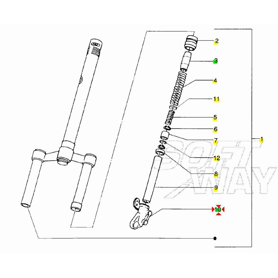 (R. 25104) Vendo piedino della forcella anteriore destro usato per Piaggio NRG 50 cc con codice Piaggio 463967 , per applicazioni e spaccato vedere foto