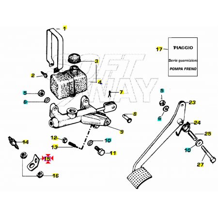 (R.23766) Vendo squadretta di fissaggio dell'interruttore dello stop nuova per Piaggio Ape TM P 50 dal 1985 - Ape RST Mix 50 dal 1998 - Ape FL FL2 FL3 Europa 50 dal 1989 , originale Piaggio dal 219871 , per applicazioni e spaccato vedere foto