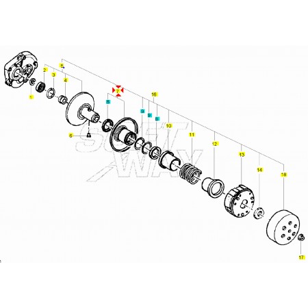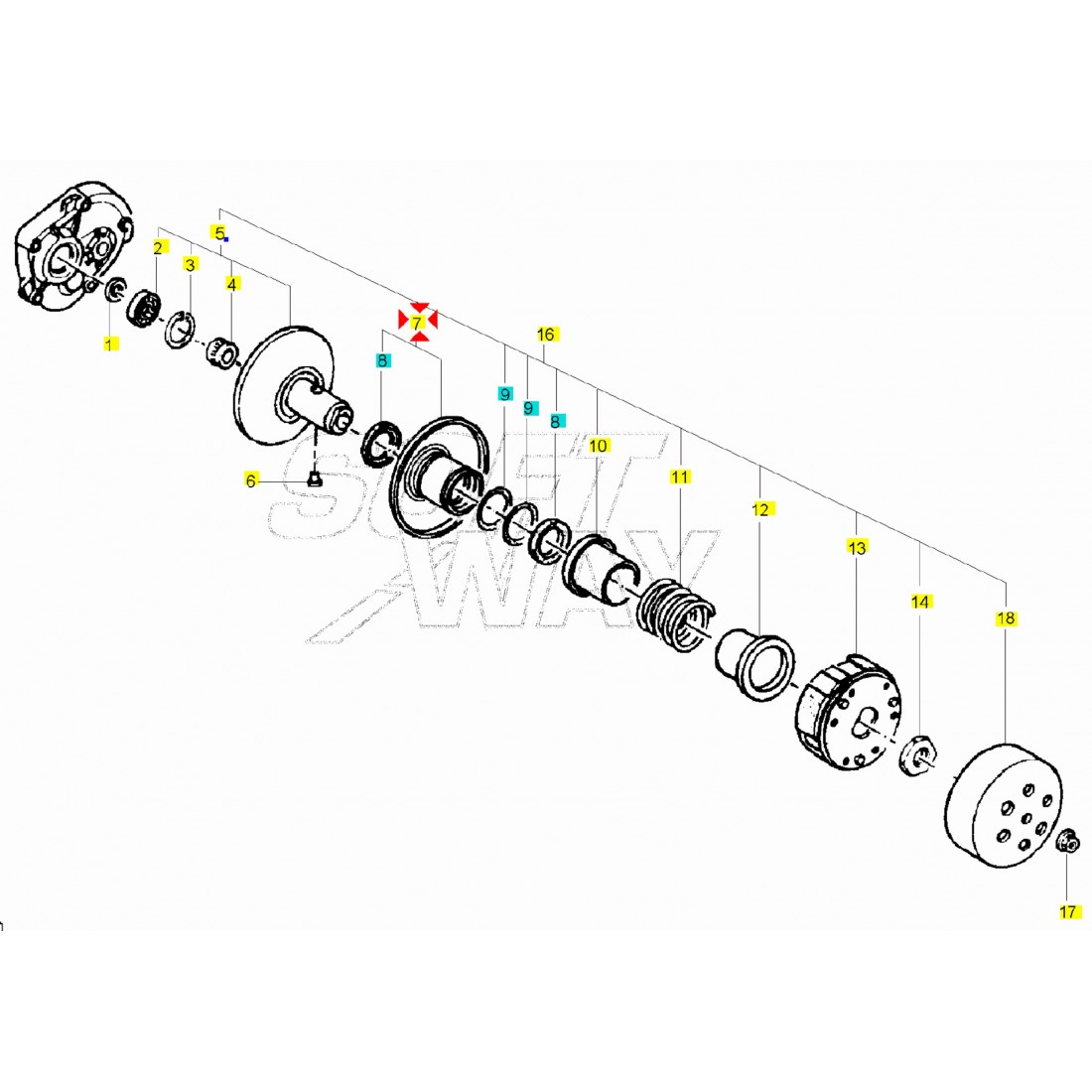 (R.16499) Vendo semi puleggia scorrevole nuova per scooter Piaggio 50 prime serie con rulli da 16 tipo Piaggio Free - NRG - Quartz - Sfera - Zip con codice simile Piaggio 430191