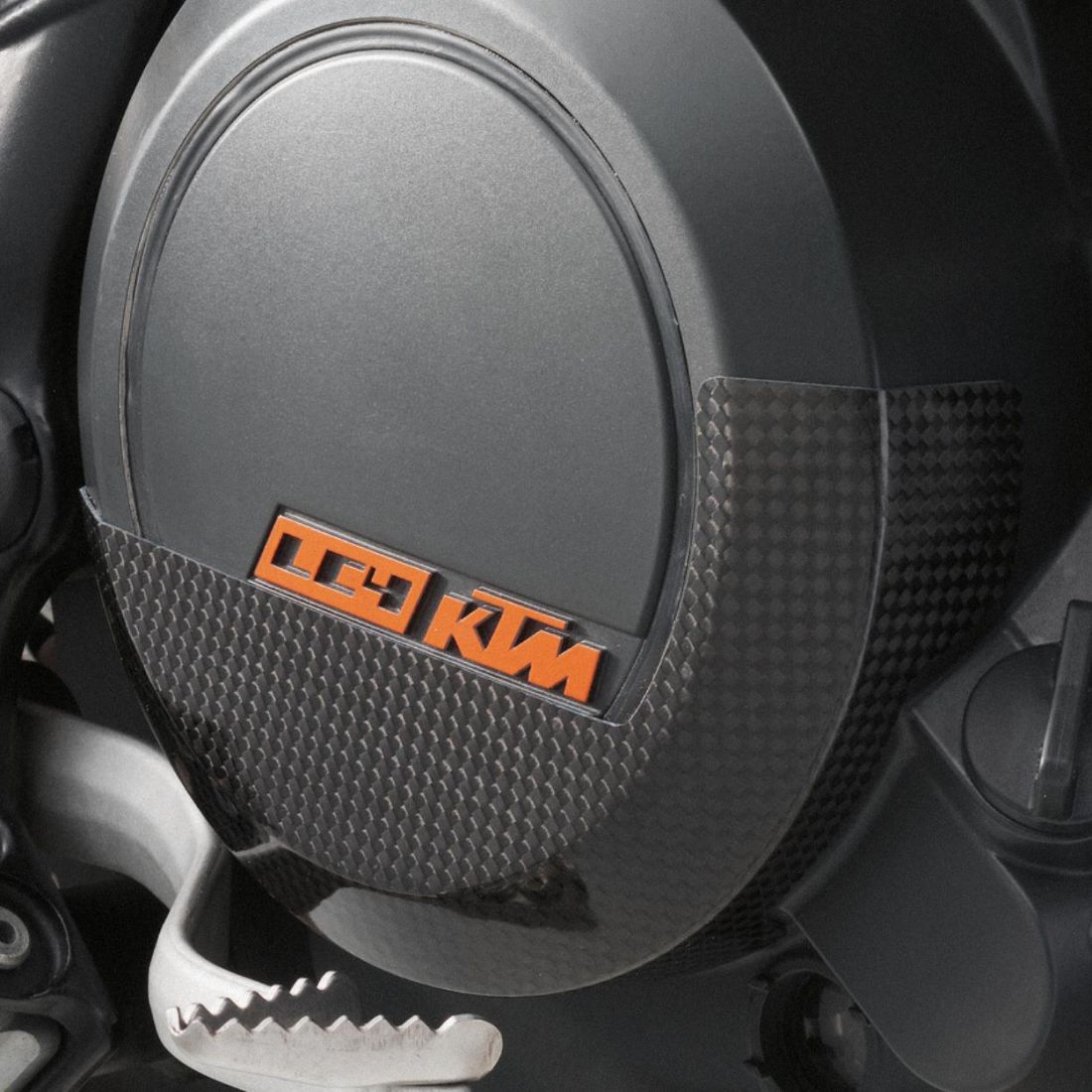 (R.24725) Vendo protezione copertura frizione nuovo per Ktm 690 dal 2007 al 2024 in carbonio realizzato in pregiato carbon con elevata rigidità e resistenza , particolarmente rinforzato nei punti a rischio di abrasioni , forma perfetta