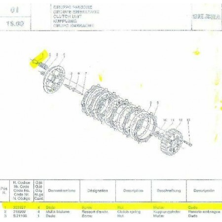 (R.4276) Dado nuovo passo M 7 X 25 per gruppo frizione Gilera KZ - KK - RRT - ER - FB - RALLY RC - R1 - MX1 - XR1 - XR2 - R1S - MXR 125 cc originale con codice Gilera 322927 , per misure vedere foto