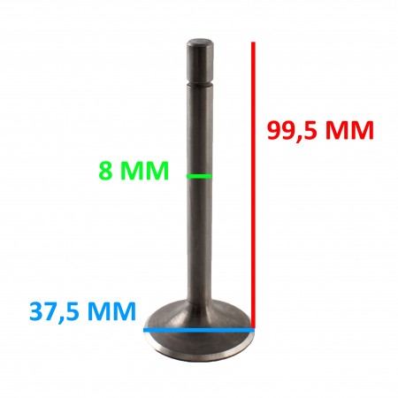 (R.15691) Vendo valvola aspirazione nuova per Ducati Indiana 750 cc dal 1986 con codice 066092110 con altezza 99,5 mm e diametro stelo 8 mm con diametro base 37,5 mm , per misure vedere foto