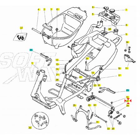 (R. 25027) Vendo braccio oscillante completo di vite e molla usato per Malaguti F12 Phantom 100 cc con motore Franco Morini AH 100 , con codice del braccio Malaguti 17402899 , per applicazioni e spaccato vedere foto