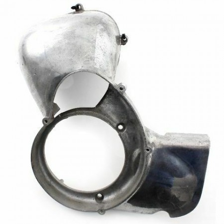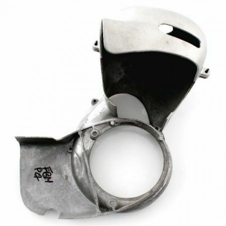 (R.1432) Vendo carterino copri cilindro in alluminio nuovo marchiato internamente M38.38 completo di cuffia convogliatore marchiata internamente M38.32 per Minarelli P4 ventola dal 1967, per applicazioni vedere foto