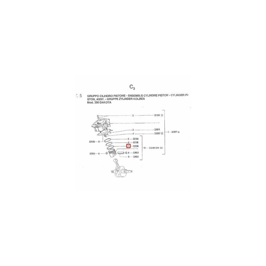 (R.12509) Vendo fascia raschiaolio nuova per Gilera Dakota 350 cc originale epoca con codice 321516 , per misure ed esploso vedere foto
