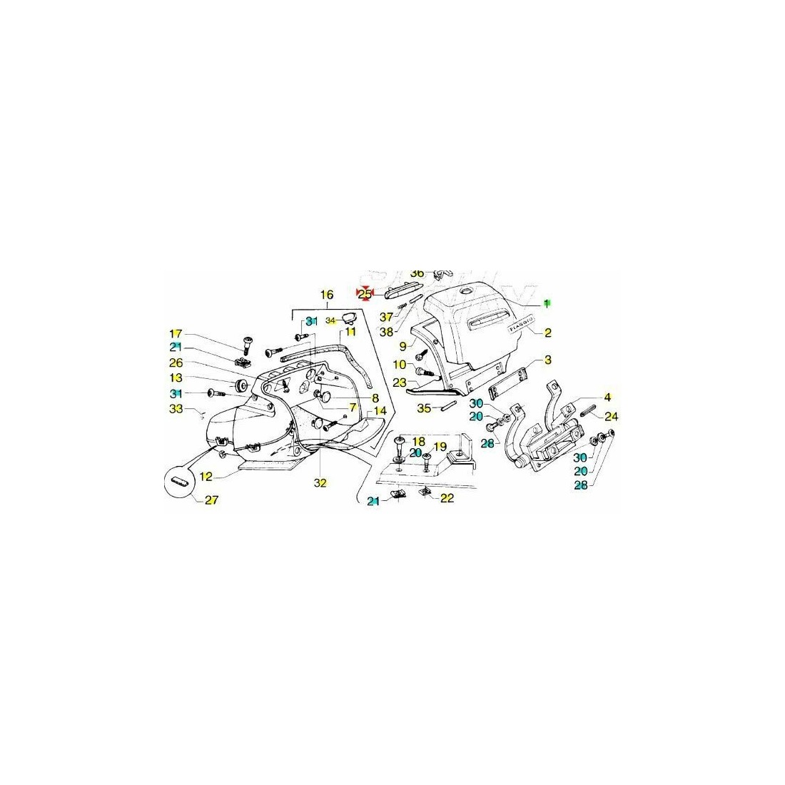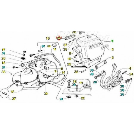 (R.5103) Vendo rinfrangente posteriore nuovo del sportello bauletto per Piaggio Hexagon Super - LX - LXT - LX4 - GTX 125 e 250 cc per telai M1400 - 1500 - M0500 - 0600 - M2000000 - 001 - 002 - 003 dal 1998 con codice Piaggio 294771 , per misure con applicazioni ed esploso vedere foto