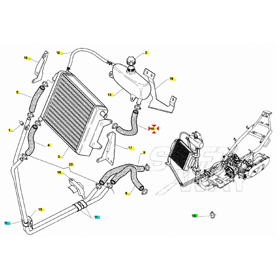 (R.25265) Vendo tubo acqua del radiatore usato tra vaso di espansione e radiatore per Aprilia SR raffreddamento a liquido 50 cc dal 1994 al 1996 con codice Aprilia AP8201817 , per applicazioni e spaccato vedere foto