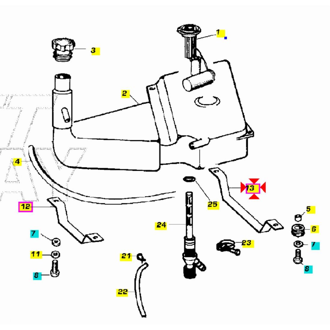 (R.23815) Vendo staffa di supporto del serbatoio carburante nuova per Piaggio Ape 50 dal 2009 - Ape FL FL2 FL3 Europa 50 dal 1989 - Ape Mix 50 dal 1998 - Ape RST Mix 50 dal 1999 , originale Piaggio con codice 255799 , con interasse fori di fissaggio 340 mm , per misure con applicazioni e spaccato vedere foto