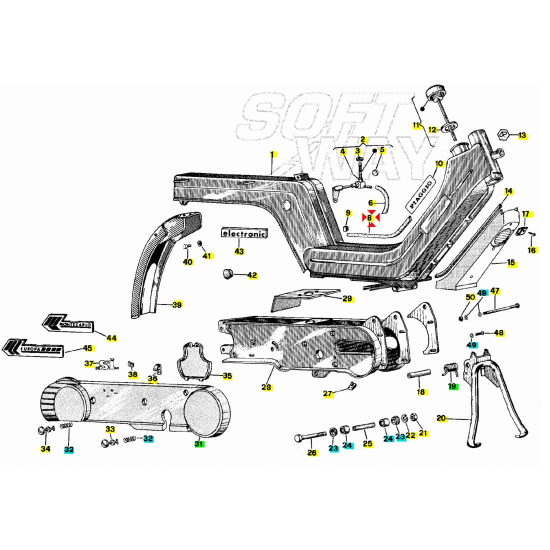 (R. 24884) Vendo bordino profilo in plastica meral cromata nuovo per Piaggio SI prima serie per telai SIM1T mono marcia e SIV1T variatore originale Piaggio con codice 186075 , per applicazioni e spaccato vedere foto