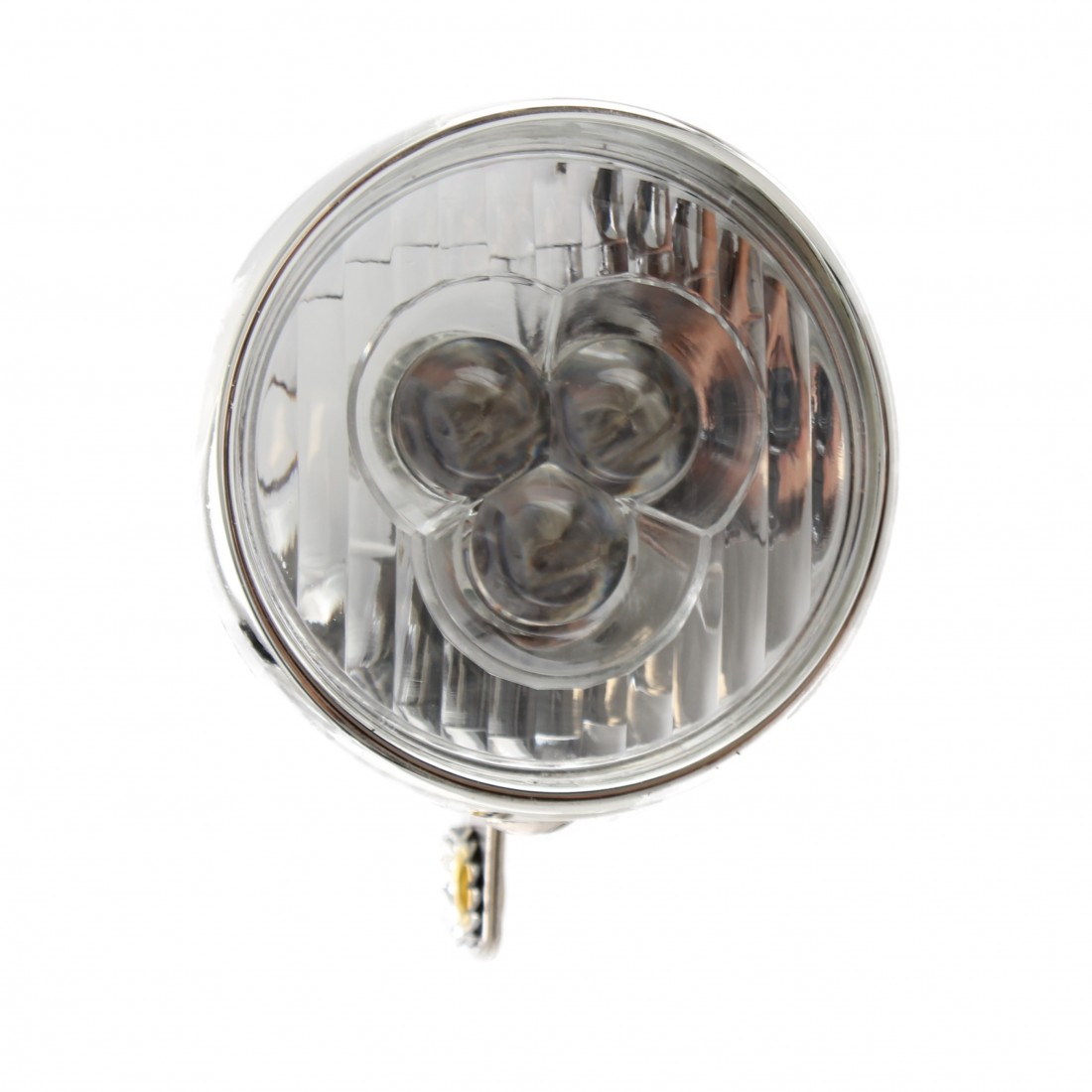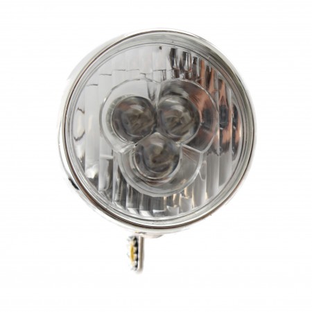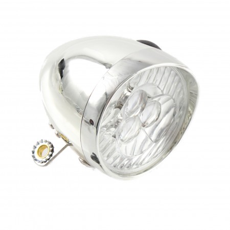(R.15325) Vendo fanale anteriore tipo retrò a batteria con LED bianchi nuovo per bici varie con calotta in plastica di colore cromato