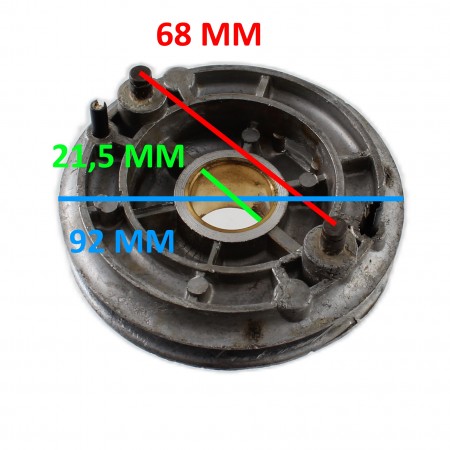 (R.15790) Vendo puleggia messa in moto nuova per motore industriale motopompa Ducati Acero 3,5 HP originale epoca con codice 022407350 con diametro esterno 92 mm e diametro foro centrale 1.5 mm con interasse pioli 68 mm , per misure ed esploso vedere foto