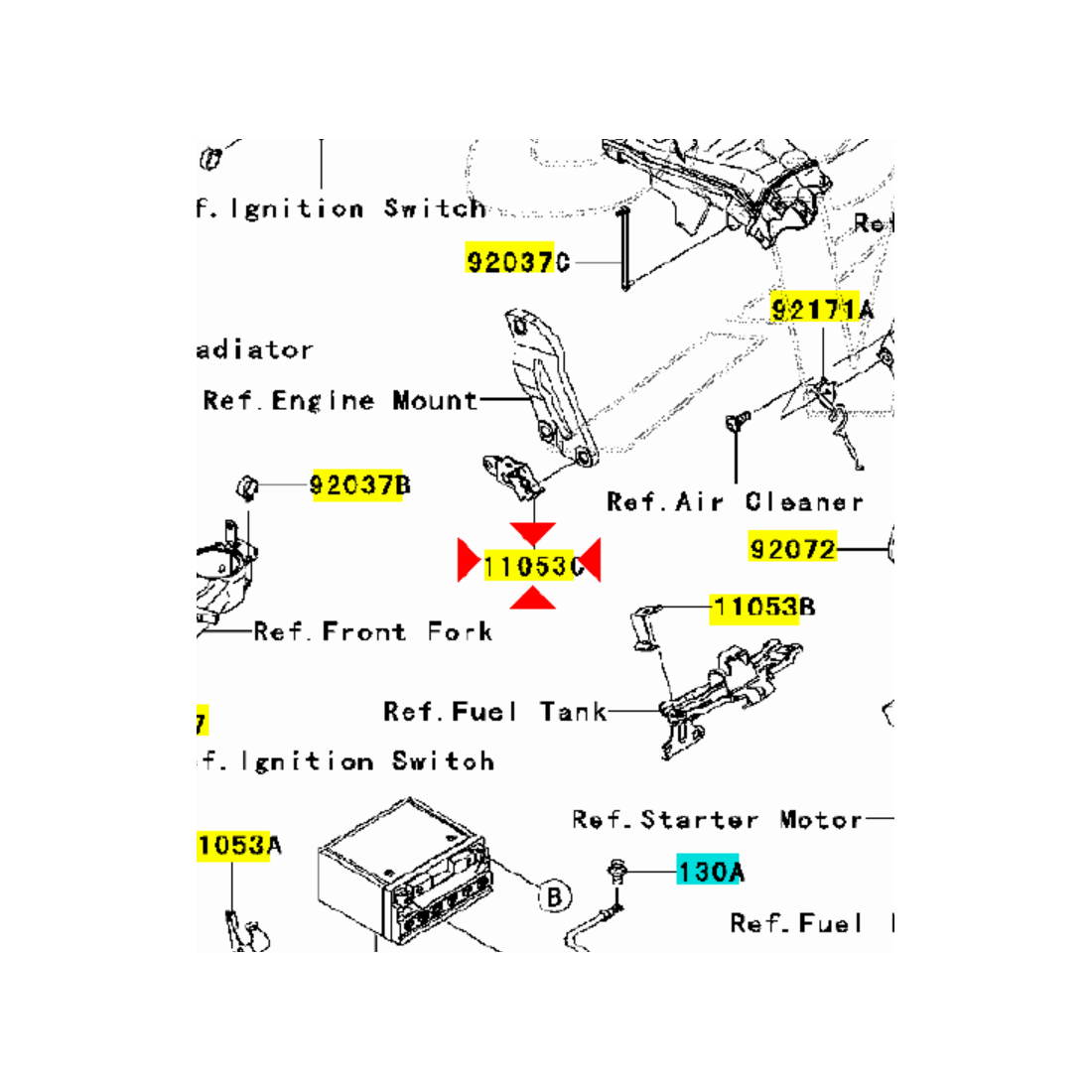 (R.19855) Vendo supporto cavi nuovo per Kawasaki Ninja ZX-10R 1000 cc dal 2004 al 2005 con codice 11053-1297 , per applicazioni ed esploso vedere foto.