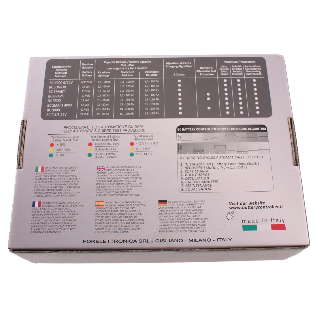 (R.21219) Vendo carica batterie nuovo a 8 cicli con tester per batterie al piombo acido da 12 Volt marca BC modello Junior