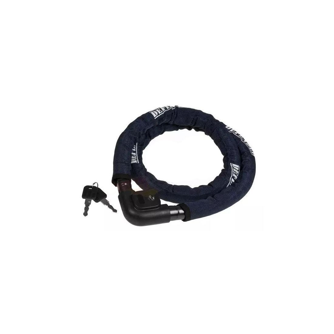 (R.22538) Vendo cavo in acciaio ricoperto in tessuto nylon con lucchetto nuovo per moto o altro marca Defender lungo 1200 mm e con spessore 22 mm completo di doppia chiave con rivestimento di colore blu